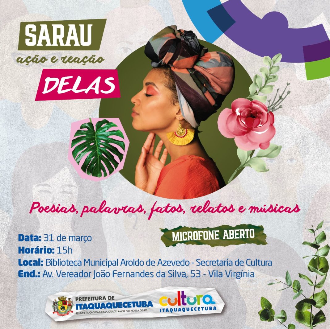 Para marcar o encerramento do mês da mulher, a Secretaria de Cultura de Itaquaquecetuba promove, nesta quinta-feira (31), o sarau Ação e Reação Delas. Com microfone aberto, o evento vai reunir música, literatura e debates tendo como pauta o protagonismo das mulheres.