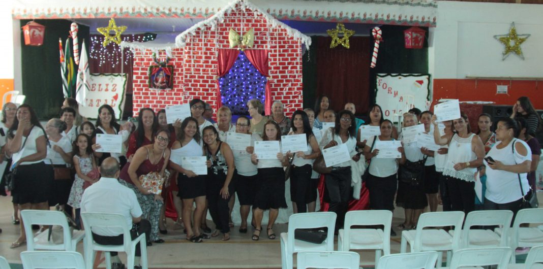 A Prefeitura de Itaquaquecetuba, por meio da Secretaria Municipal de Desenvolvimento Social, promoveu na manhã desta sexta-feira (15 de dezembro) a formatura de 98 alunos do programa Renda Cidadã. A entrega de certificados para as alunas de culinária, tricô, tear, crochê, bordado, pintura em tecido e ponto cruz foi realizada no Centro Esportivo Municipal de Itaquaquecetuba (CEMI).