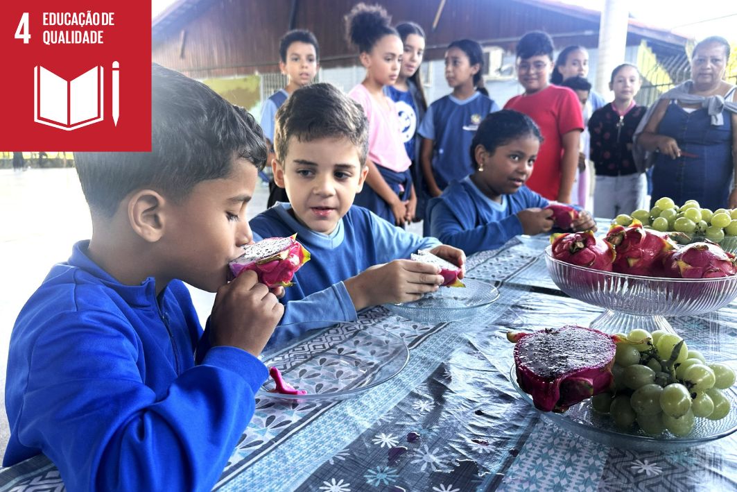 Por ser a primeira vez no cardápio da alimentação escolar, a fruta foi ofertada aos estudantes para degustação e conhecimento, proporcionando uma experiência diferente, divertida, educativa e nutritiva dentro do ambiente escolar.